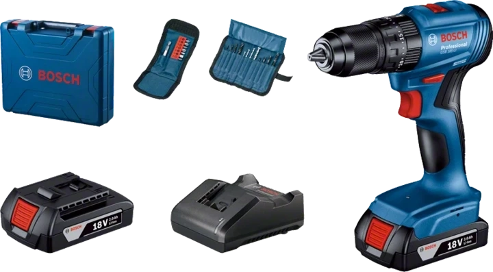 - Phụ kiện kèm theo 2 pin GBA 18V 2.0Ah (số hiệu phụ tùng 1 617 B00 0BJ); Bộ sạc GAL 18V-20 Professional 1 600 A02 1KT; Bộ mũi khoan và mũi bắt vít 23 chi tiết có ống cặp; Hộp mang