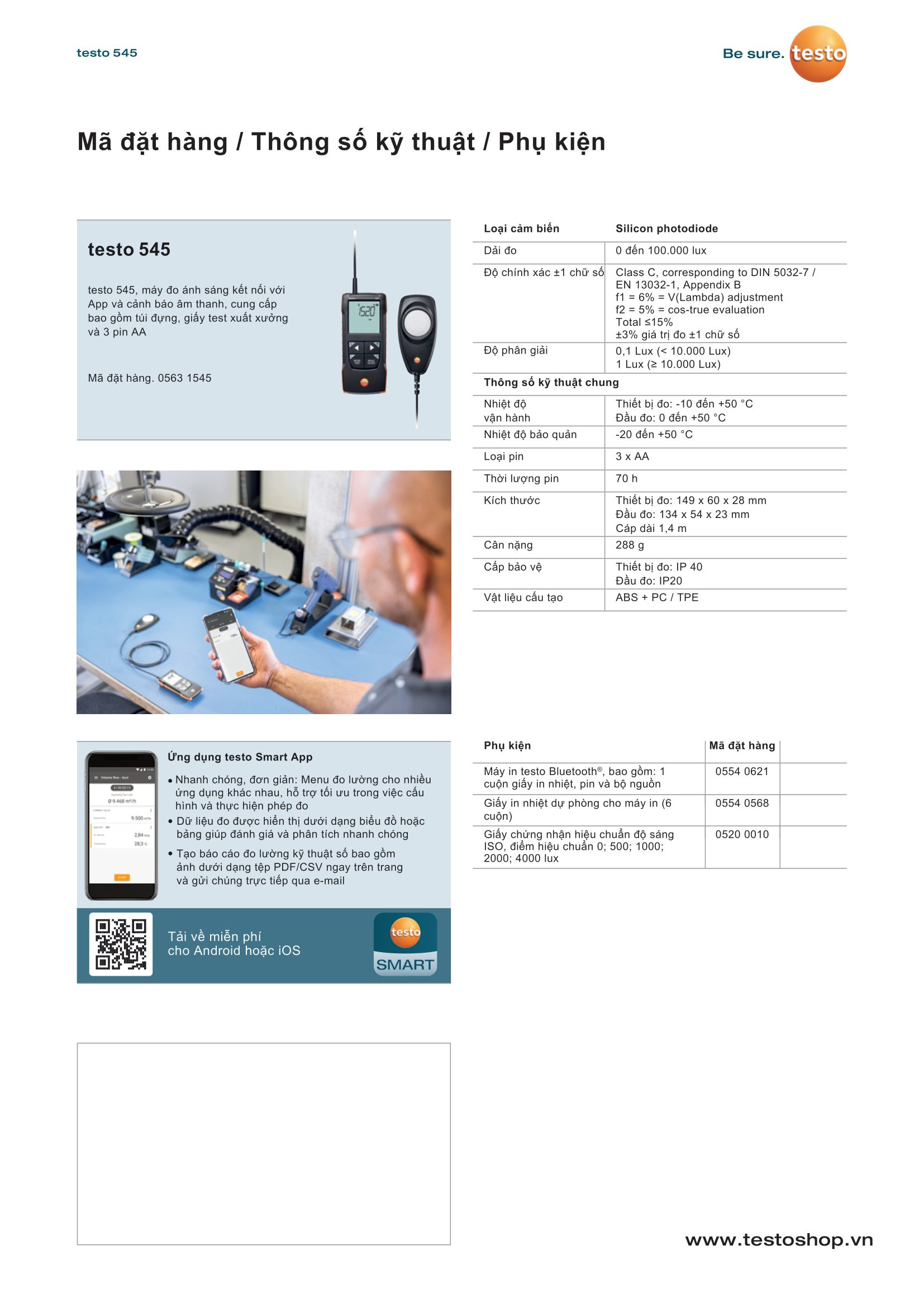 - Giá Thiết bị đo cường độ sáng Testo 545 0563 1545 rẻ nhất trong ngành công nghiệp MRO