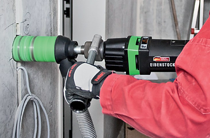 - Khi khoan trong điều kiện ẩm ướt hoặc khi hợp nối đất bị hư hỏng, sử dụng lưỡi khoan rút lõi bê tông có bộ ngắt mạch để đảm bảo an toàn tại công trường.
