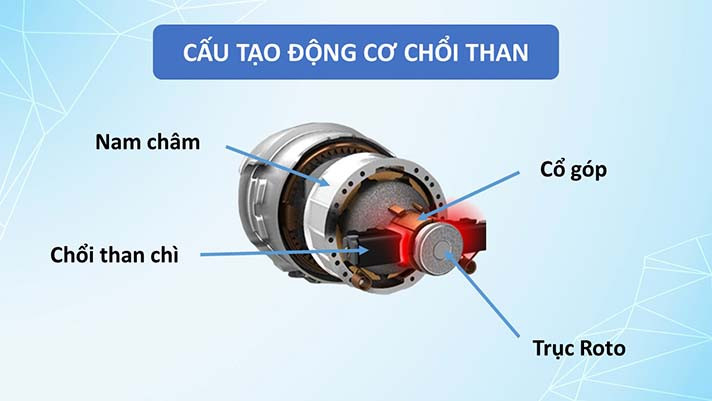 Động cơ chổi than hoạt động dựa trên nguyên lý tiếp xúc giữa cổ góp và chổi than để cung cấp dòng điện cho cuộn dây. Cấu tạo của động cơ này khá đơn giản, với cuộn dây nằm trên Rotor. Khi động cơ vận hành, chổi than liên tục trượt trên bề mặt cổ góp để duy trì dòng điện cho Rotor.