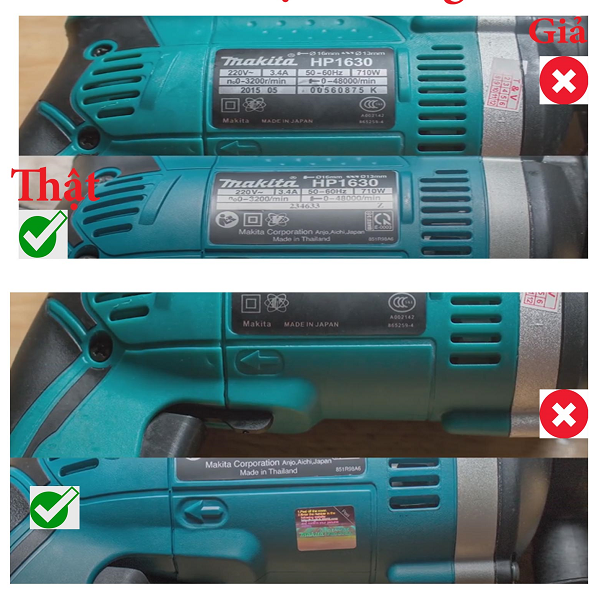 Khi mua máy khoan pin, việc nhận biết máy chính hãng và máy nhái sẽ giúp bạn tránh các rủi ro liên quan đến chất lượng sản phẩm. Dưới đây là các dấu hiệu quan trọng giúp bạn phân biệt máy khoan pin giả.
