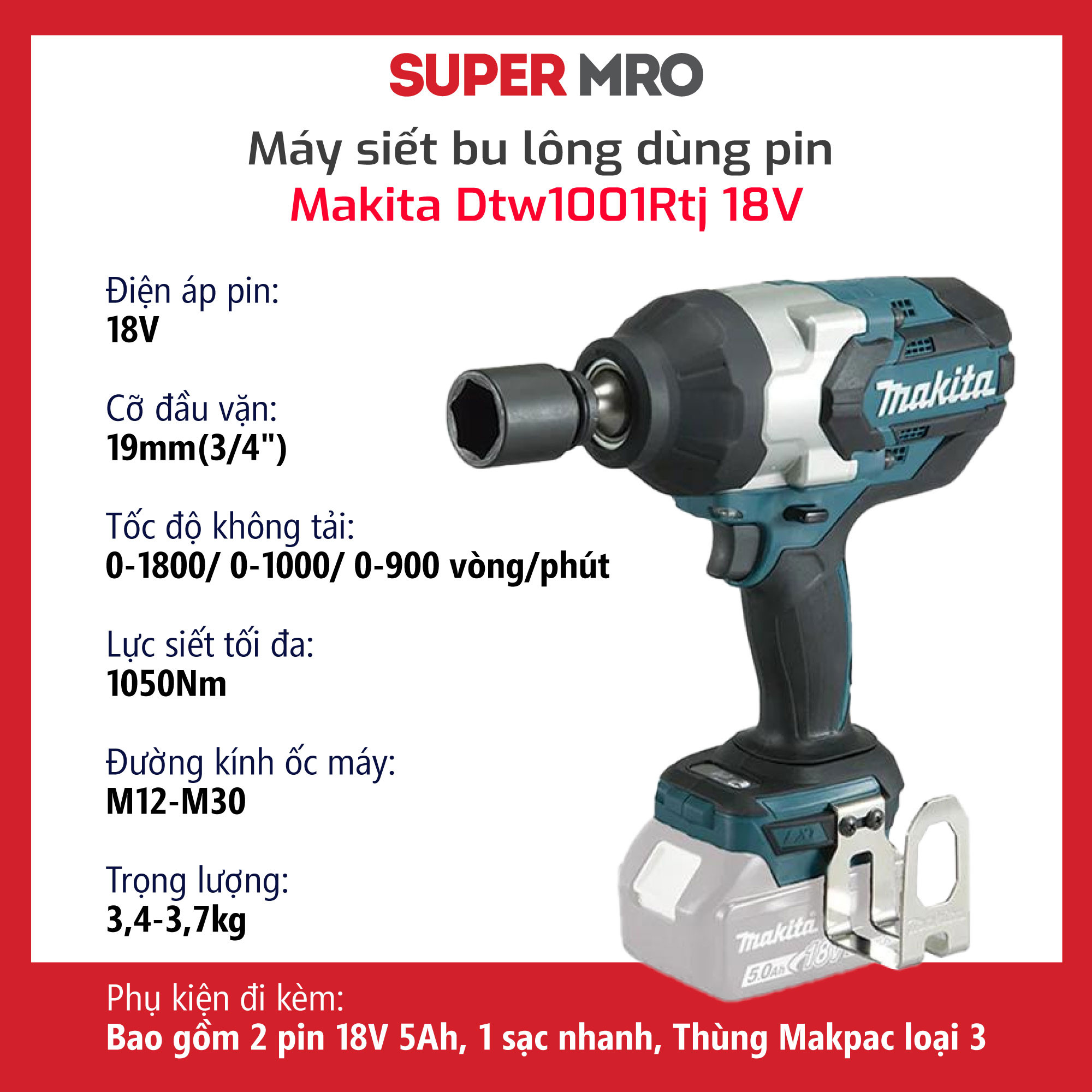 Đặt mua tại đây: https://super-mro.com/san-pham/may-van-bu-long-dung-pin-makita-dtw1001rtj-18v.html